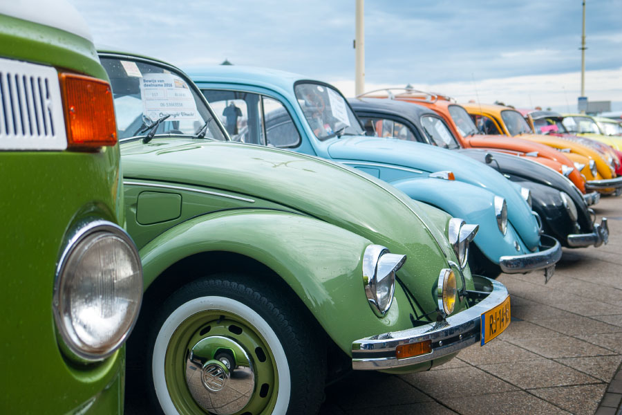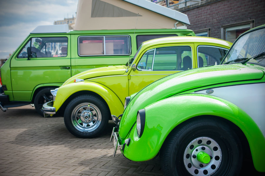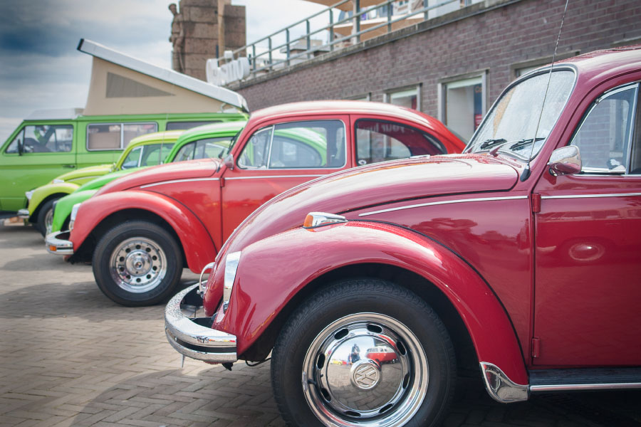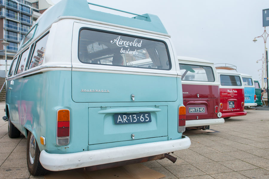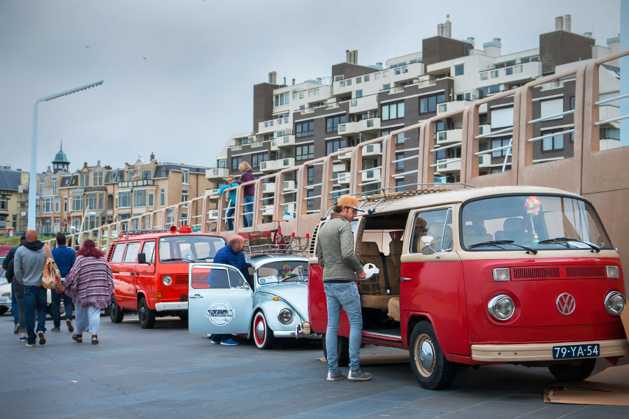 Honderden luchtgekoelde auto’s, voornamelijk VW’s maar ook wat Porsches en een enkele NSU of Fiat 500, staan een dag lang uitgestald op de Scheveningse boulevard.