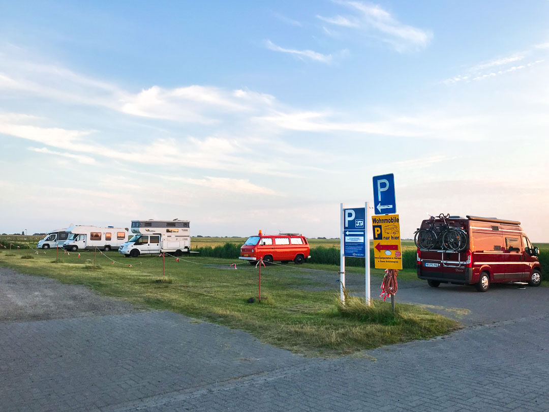 Dan op naar mijn slaapplaats voor vannacht: Nessmersiel. Bij het haventje van het veer naar Baltrum is een parkeerplaats waarvan een deel als camperplaats is ingericht. Een prachtplek, met uitzicht op het jachthaventje in een geul aan de ene kant, en de kwelder met het wad aan de andere.