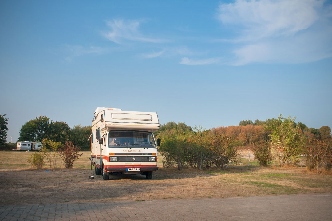 In Jülich sta ik op een aardig plekje, schuin tegenover een fraaie LT Karmann camper.