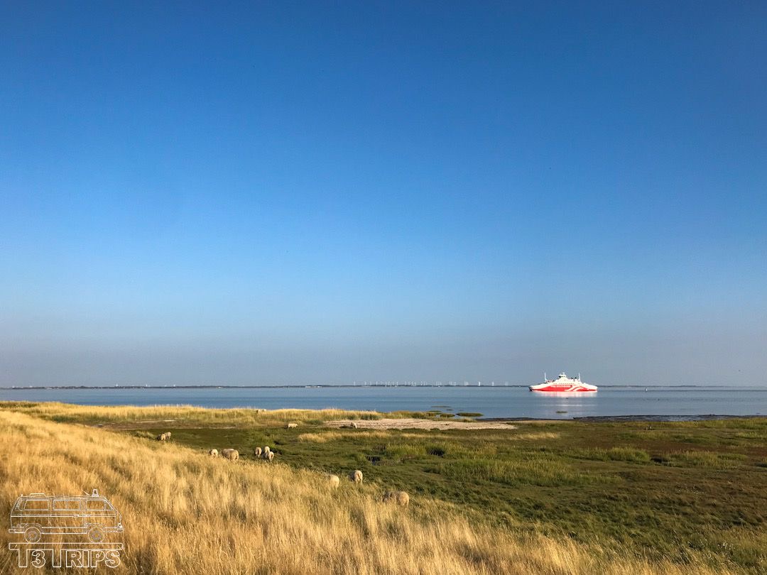 Ik wandel een stukje (over de boulevard), fiets dan door naar het haventje – waar de ferry inmiddels is aangekomen – en hang daar rond tot de boot weer vertrekt.