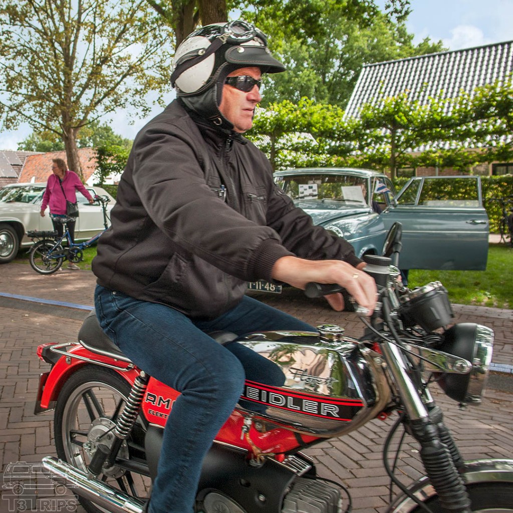 Er waren niet alleen klassieke auto’s te zien op deze oldtimerdag, maar ook oude trekkers en brommers – we zijn hier tenslotte in Drente, op het platteland nog wel.