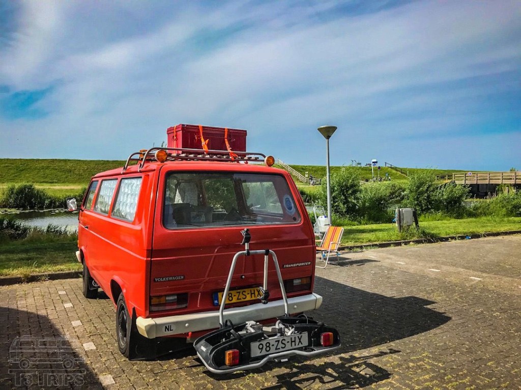 Op de iets apart van de camping gesitueerde campercamping had ik een plekje gereserveerd. Maar goed ook, want het was bomvol. Op een rijtje tussen een bataljon campers van het type koelkast vond mijn busje een plekje met zicht op de IJsselmeerdijk, met daarvoor een smal kanaal, dat Westervaart heet en meer een veredelde sloot lijkt, en een grasveldje. Een aardig uitzicht.