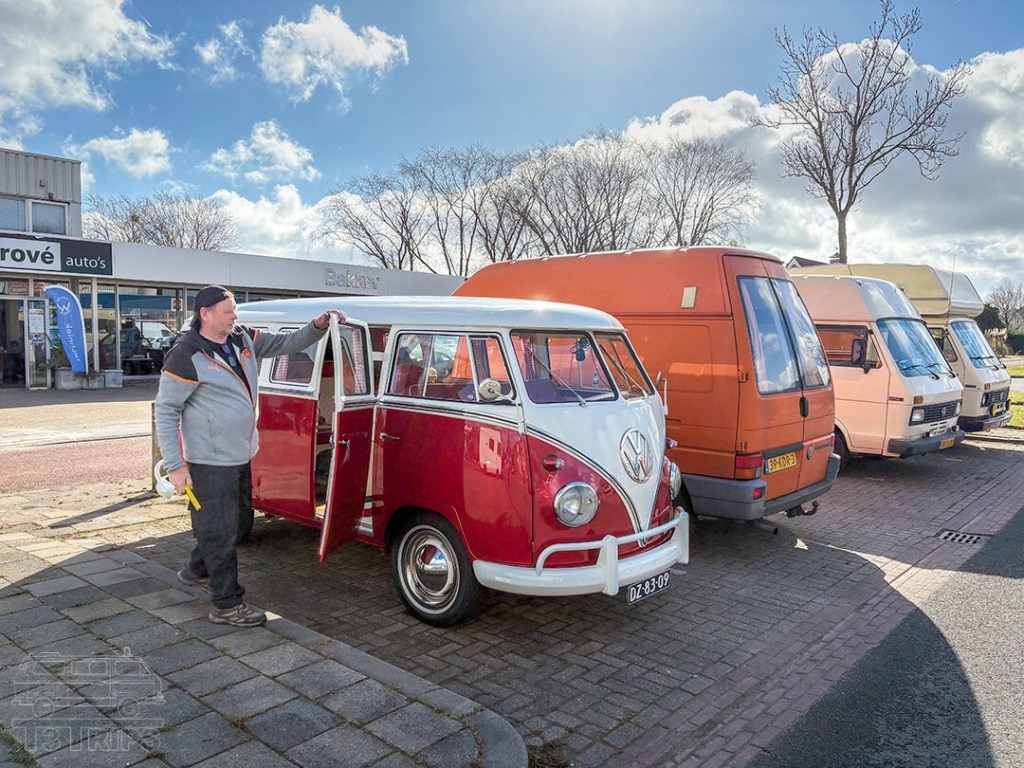 Zo’n 25 VW-bussen, in alle soorten en maten, verzamelden zich op deze zonnige, maar koude dag in het Groningse Tolbert, bij garagebedrijf Brové. Dat had zijn werkplaats beschikbaar gesteld aan de VW Bus Club voor een ‘technische dag’.